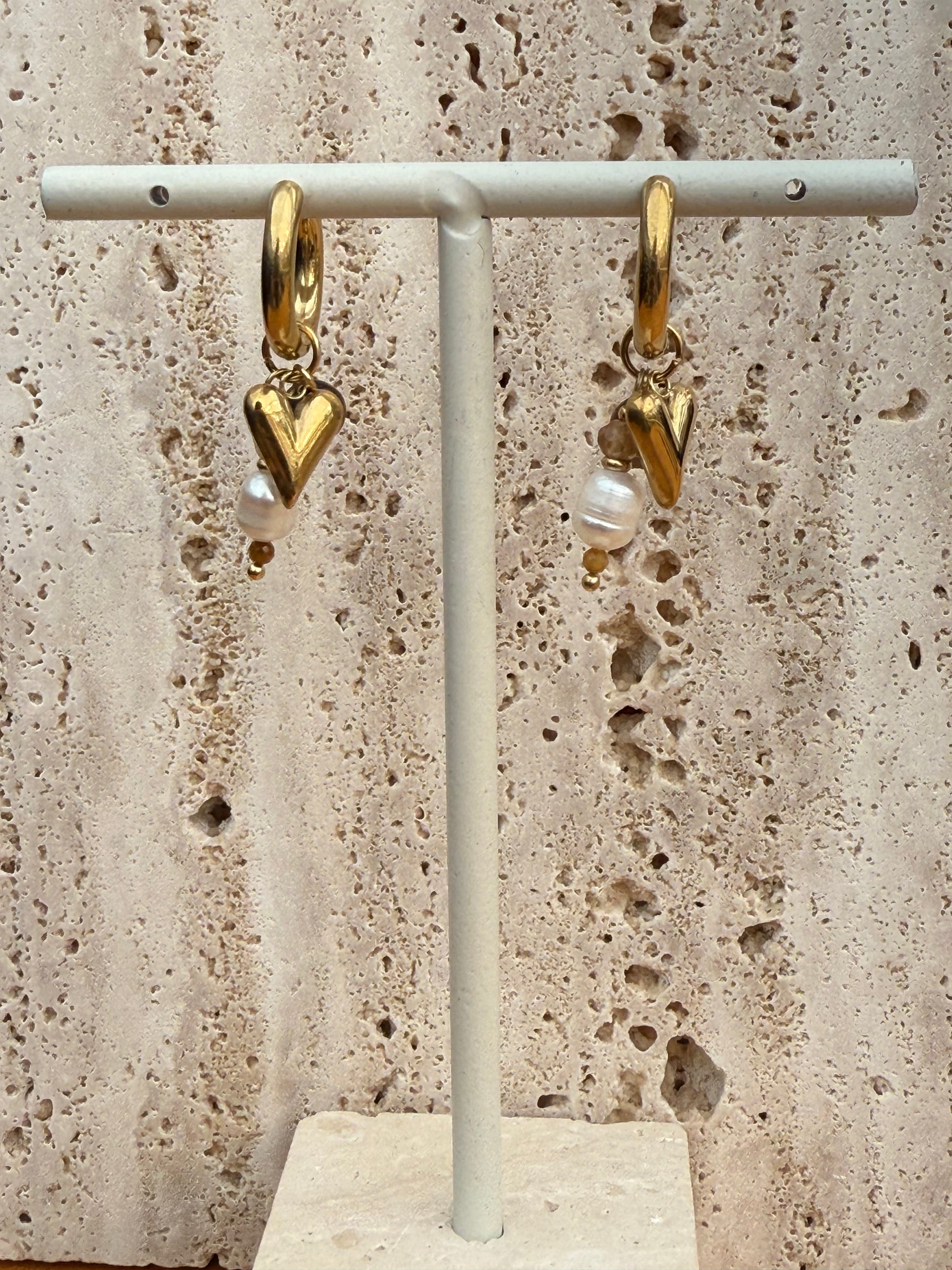 Hartjes oorbellen met een vleugje bruin